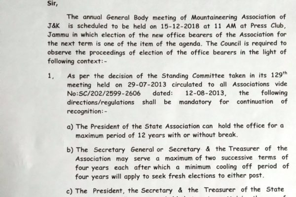 Election of the office bearers of mountaineering Association of J&K December 7, 2018 News & Activities