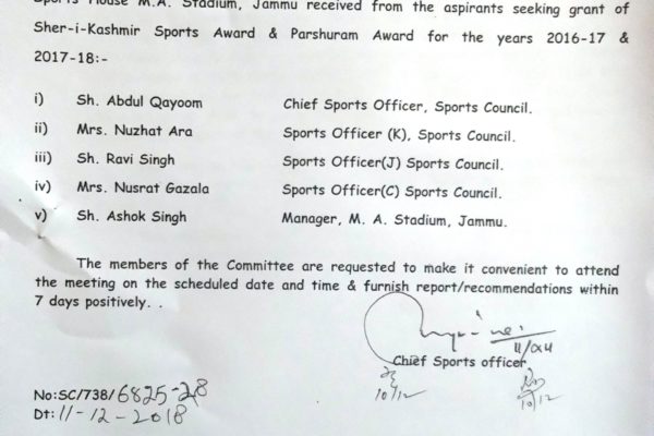 Meeting regarding for scrutiny of applications for grant of SK Sports Award and Parshuram Award for the years 2016-17 to 2017-18 December 12, 2018 News & Activities