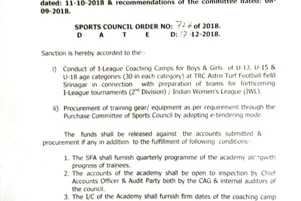 Conduct of I League coaching camps for U-13, U-15, & U-18 Boys and Girls at Srinagar December 17, 2018 News & Activities