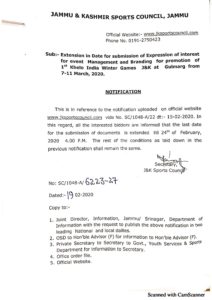 Notification- Conduct of elections of office bearers of Jammu & Kashmir Swimming Association -Appointing of Returning Officer and Observer