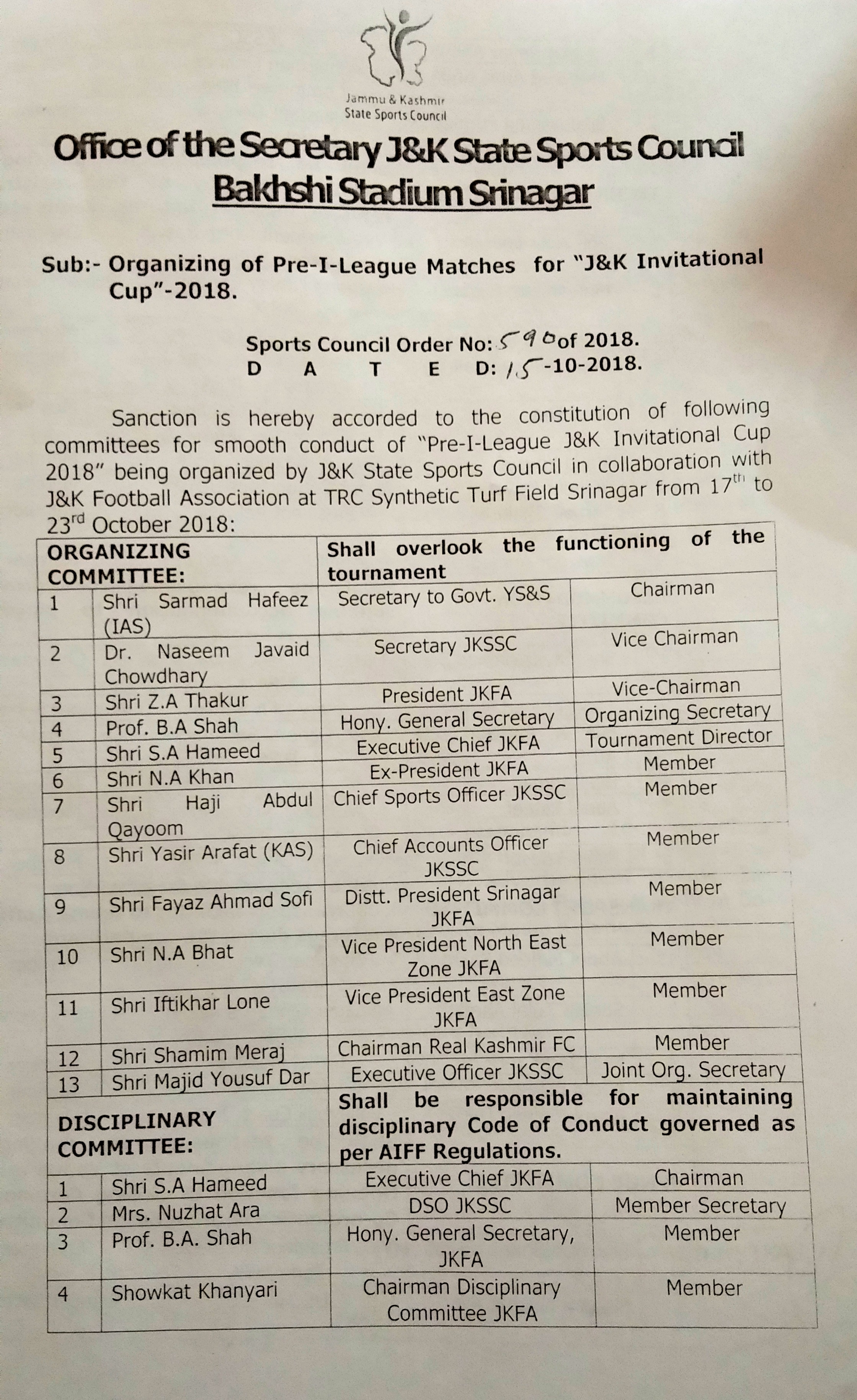 Notification- Conduct of elections of office bearers of Jammu & Kashmir Swimming Association -Appointing of Returning Officer and Observer