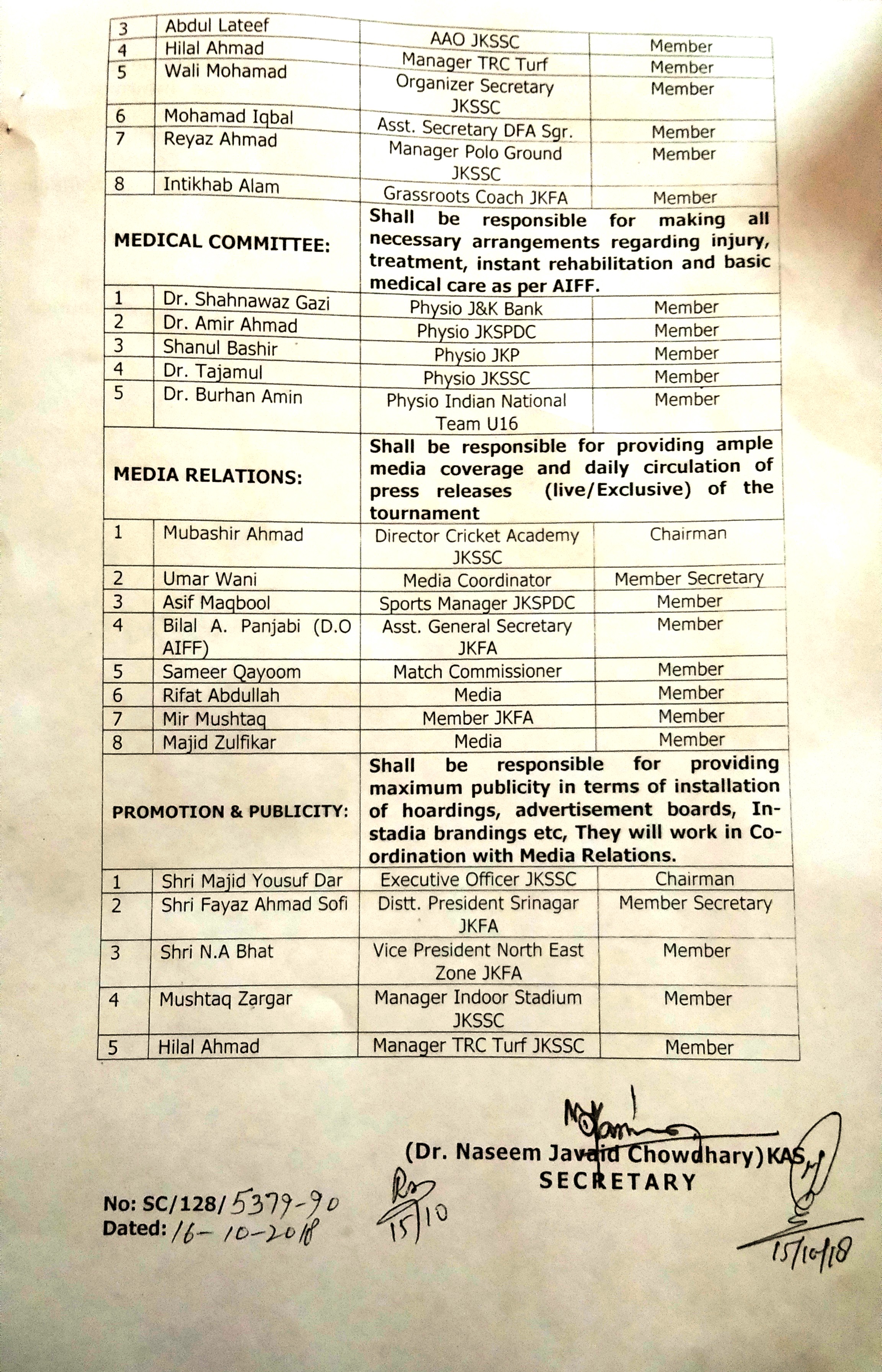 Notification- Conduct of elections of office bearers of Jammu & Kashmir Swimming Association -Appointing of Returning Officer and Observer
