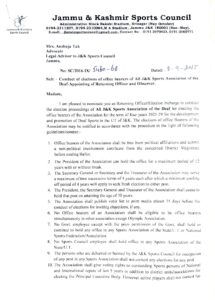 • Notification- Conduct of elections of office bearers of Jammu & Kashmir Swimming Association -Appointing of Returning Officer and Observer