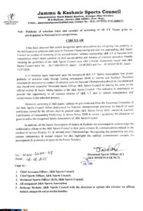 Notification:- Publicity of selection trails and conduct of screening of JK UT Teams prior to Participation in National level competitions
