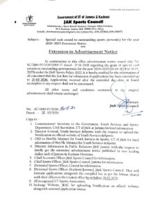 Notification- Special cash award to outstanding sports person(s) for the year 2024-2025-Extension Notice February 15, 2026 Notification- Special cash award to outstanding sports person(s) for the year 2024-2025-Extension Notice